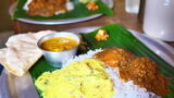 この日のメニューはマドゥライチキンカレー、サンバル、ナスのカレーの3種類。チキンとサンバルは定番らしく、三番目のカレーが変わるよう。チキンとサンバルを食べたので分からないのだが、ナスは酸味の効いたタマリンドベースのコロンブだろうか。